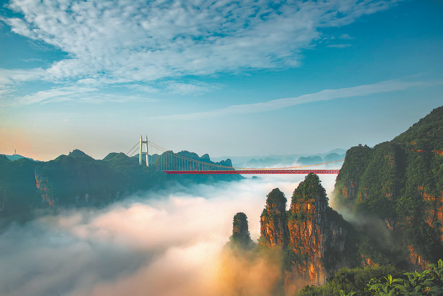 The Aizhai Bridge spans across the Dehang Grand Canyon, a picture-perfect site in Jishou, Xiangxi Tujia and Miao autonomous prefecture. [Photo by Yang Yang/China Daily]