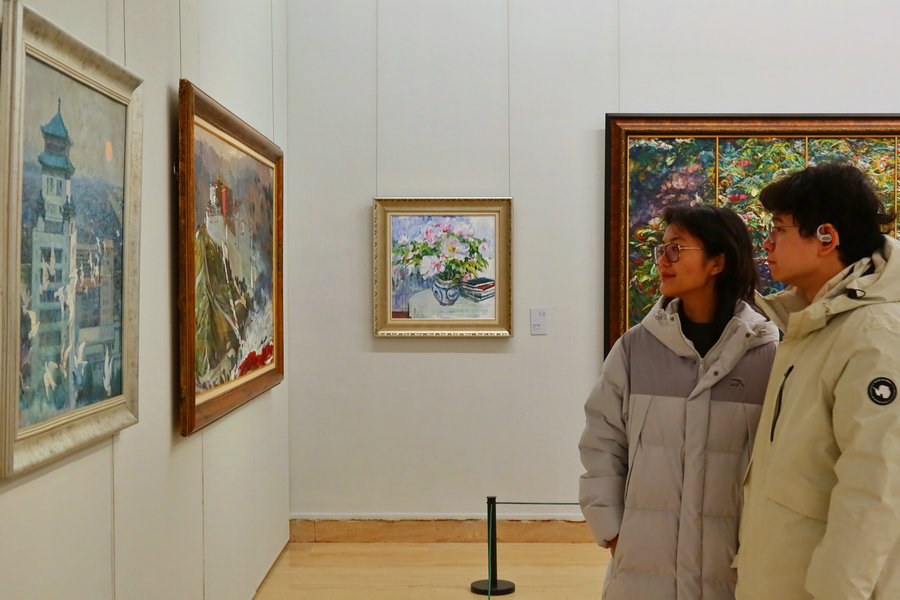 Zhao Yitang's vivid paintings deliver a sense of rhythm, while his calligraphy shows his dedication to lishu over time. [Photo by Jiang Dong/chinadaily.com.cn]