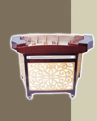 中国传统的扬琴,音箱呈蝴蝶形或扁梯形,上置有两条琴码,以架设钢丝琴弦,有8音、10音、12音3种,音域分别为f1~c2, d1~d3, c~e3。现代专业乐队所用为改革的十二平均律大扬琴。演奏时琴置于架上,左右手各执一琴竹,敲击在条码两侧的弦上发音。音色清亮悠扬,音域宽广,广泛应用于各种民间器乐合奏。 传统乐曲有《龙船》、《苏武》、《将军令》等。
