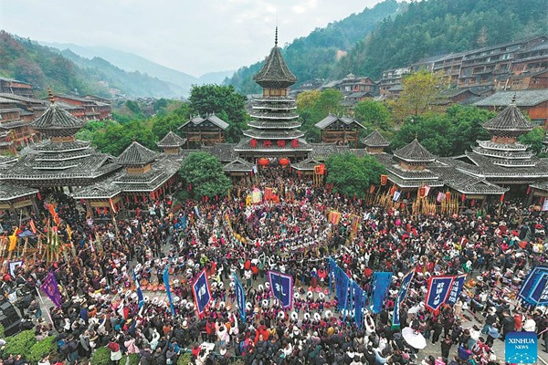 To the rhythm of lusheng woodwind pipes and the scent of sticky rice cakes, a village in southwest China's Guizhou province celebrated its annual Dong Ethnic New Year Festival over the weekend.