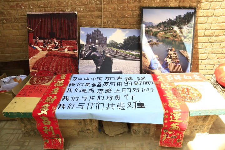 Teachers and students of Chinese at the University of Khartoum in Sudan support epidemic-stricken China through an exhibition featuring Chinese culture,Feb 25, 2020.